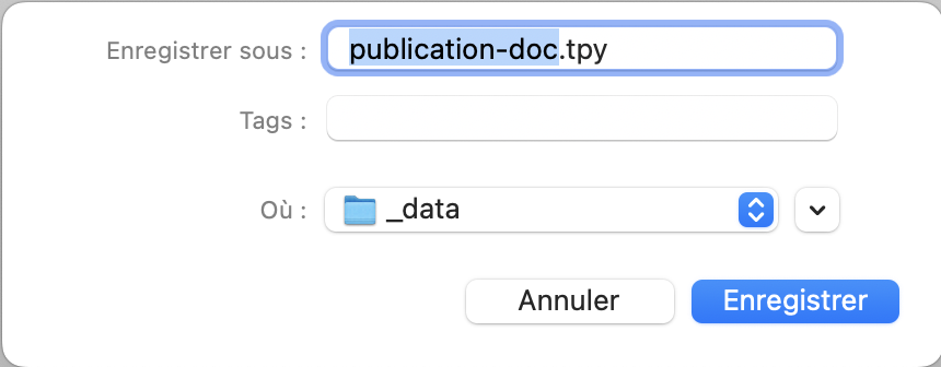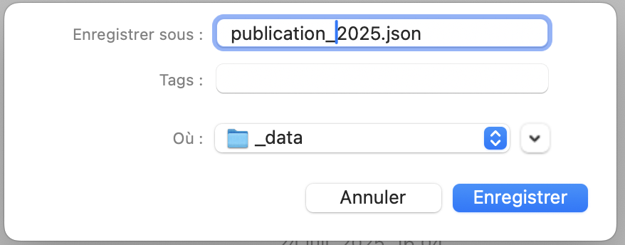 ⚠️ Il est préférable d'enregistrer ce fichier à la racine de votre projet de publication afin qu'il bénéficie de la sauvegarde et "versionning" via le gitlab.