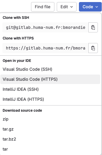 Puis dans votre espace Gitlab, cliquez sur code en haut à droite